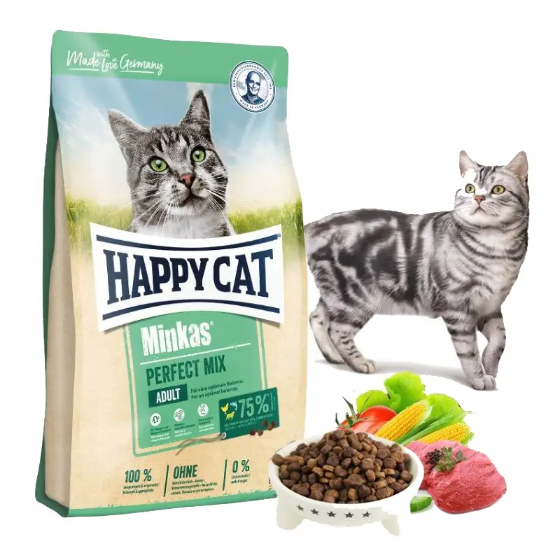 غذای خشک گربه هپی کت مینکاس پرفکت میکس (Happy Cat Minkas Perfect Mix) در پت شاپ حامی پت، انتخابی عالی برای تمامی گربههای بالغ است. این محصول با نام “Happy Cat Minkas” شناخته میشود و شامل تمامی عناصر مورد نیاز برای سلامت و رشد مناسب گربههاست.