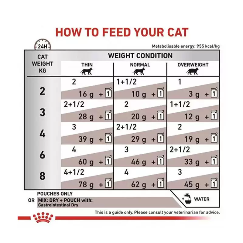 در صورتی که گربه شما در معرض ابتلا به اضافه وزن نیز قرار دارد، استفاده از گاسترواینتستینال گربه رویال کنین مدل مدریت کالری پیشنهاد می شود. این غذا با کالری متوسط به حفظ وزن مناسب کمک می کند و در عین حال، درمانی برای بیماری های گوارشی است. این غذا حاوی ترکیبات پروبیوتیک است که به تقویت و متعادل سازی باکتری های مفید و درمان بیماری های روده کمک می کنند. فیبرهای موجود در غذای گربه گاسترواینتستینال مدریت کالری رویال کنین نیز موجب هضم و جذب بهتر غذا و بهبود کیفیت مدفوع خواهند شد. این محصول حاوی اسیدهای چرب ضروری امگا 3 از جمله EPA و DHA به دست آمده از روغن ماهی است که دستگاه گوارش را تسکین می دهد.این غذا مطابق با شاخص S/O تولید شده که به حفظ سلامت دستگاه ادراری کمک کرده و از تشکیل سنگ های کلیه و مثانه پیشگیری می کند. این محصول را می توان در ترکیب با غذای پوچ گسترواینتستینال استفاده نمود.