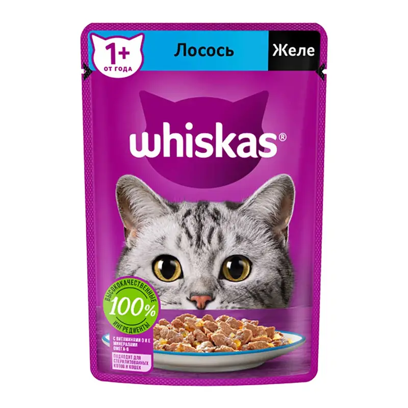 پوچ گربه ویسکاس با طعم ماهی سالمون در ژله Whiskas Salmon in Jelly وزن 75 گرم