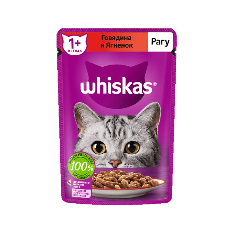 پوچ گربه ویسکاس با طعم گوشت گاو و بره Whiskas Beef & Lamb وزن 75 گرم
