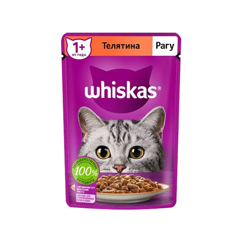 پوچ گربه ویسکاس با طعم گوشت گوساله Whiskas Veal وزن 75 گرم