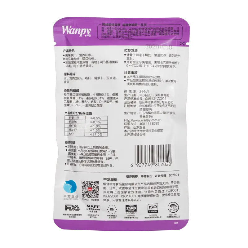 پوچ گربه ونپی (Wanpy) محصولی جدید و منحصر به فرد است که با بررسی نیازهای مورد نیاز بدن گربهی شما، مواد معدنی و ویتامینهای ضروری را در این محصول خاص قرار داده تا سلامتی دلبند شما را به ارمغان بیاورد.