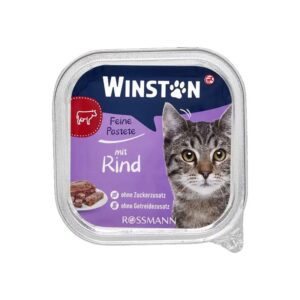 ووم گربه وینستون با طعم گوشت گاو (Winston Schlemmer Mit Rind) وزن 100 گرم یک محصول ایده آل حاوی مواد مغذی و میزان چربی کنترل شده است. این محصول برای گربه ها نژاد مختلف تولید شده است. ووم گربه وینستون با طعم بیف دارای رطوبت بالا بوده و کمبود آب مورد نیاز بدن گربه را تامین می کند. این غذا را می توانید با غذای خشک حیوان ترکیب کنید. انواع ویتامین موجود در این غذا به حفظ سلامت و شادابی بدن گربه کمک می کند. محتوای این غذا متناسب با دهان گربه بوده به خوبی با غذای خشک حیوان مخلوط می شوند.